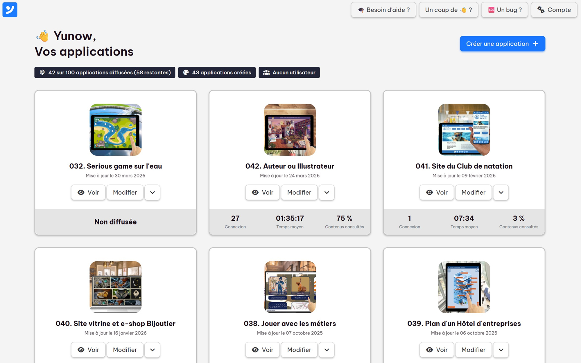 Yunow offre un back-office simple d’utilisation qui vous permet d’être autonome dans la gestion de l’ensemble de vos applications.